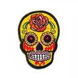 Opstrijkbare applicatie sugar skull geel groot (1 stuk)